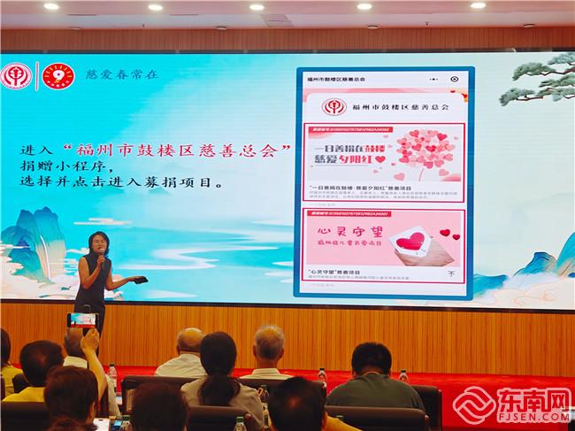 此外,活動現(xiàn)場還推廣了數(shù)字賦能行善的兩項創(chuàng)新舉措,《慈善微課堂》的上線和鼓樓區(qū)慈善捐贈小程序的推廣應(yīng)用?!洞壬莆⒄n堂》已在“福州市鼓樓區(qū)慈善總會”微信公眾號播出第一期,旨在普及慈善知識,提升公眾的慈善意識?!耙辉X也是愛,每一元捐款都將成為身處困境的生命們前行的動力?!惫臉菂^(qū)慈善總會副秘書長林旭霞詳細介紹了小程序的使用方法,并現(xiàn)場號召大家參與愛心捐款。目前,“鼓樓慈善捐贈小程序”特別推出了“一日善捐在鼓樓·慈愛夕陽紅”和“心靈守望”兩大慈善項目。林旭霞表示,期待更多的人通過“慈善微課堂”和“鼓樓慈善捐贈小程序”加入慈善事業(yè),共同為構(gòu)建和諧社會貢獻力量。